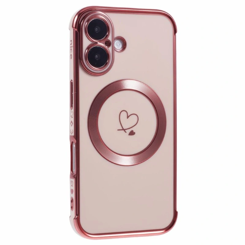 Kryt na iPhone 16 Srdiečko s podporou MagSafe ružový