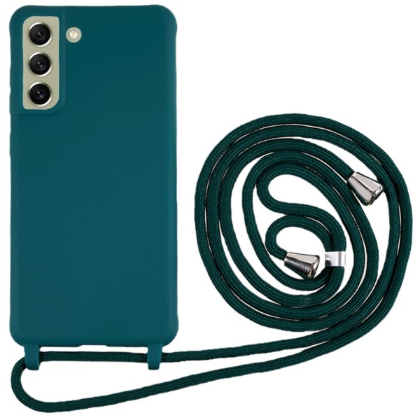 Kryt na Samsung Galaxy S21 FE gumový so šnúrkou na krk zelený