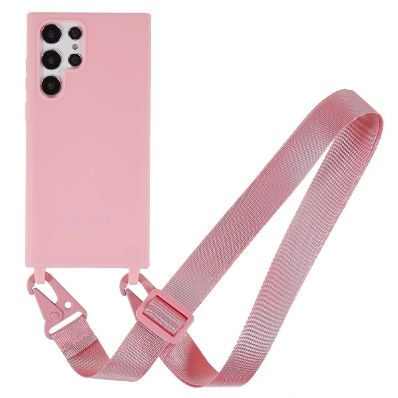Kryt na Samsung Galaxy S22 Ultra gumový so šnúrkou na krk ružový