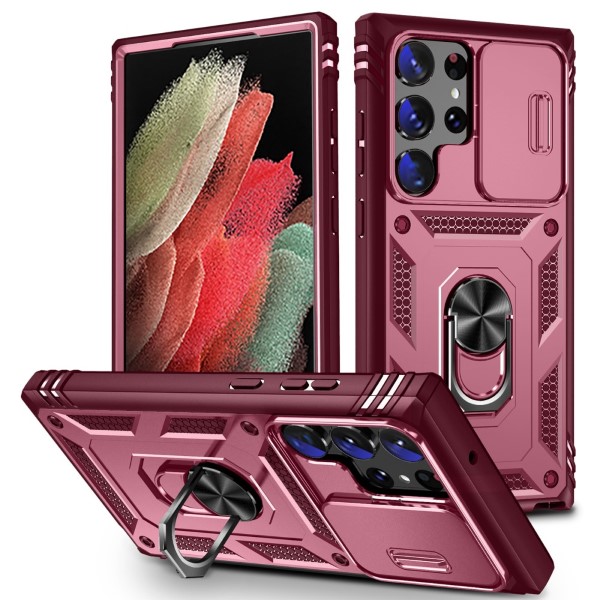 Kryt na Samsung Galaxy S23 Ultra odolný s krytom na fotoaparát vínový