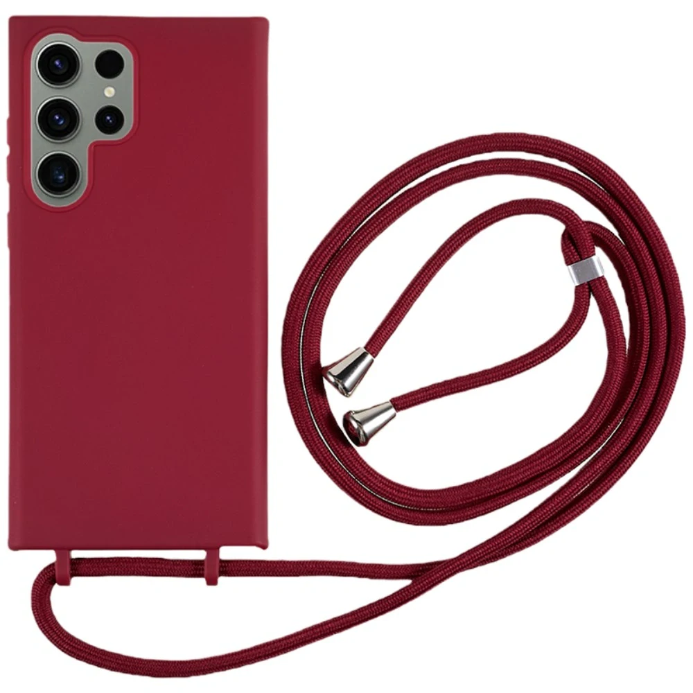 Kryt na Samsung Galaxy S25 Ultra gumový so šnúrkou na krk vínový
